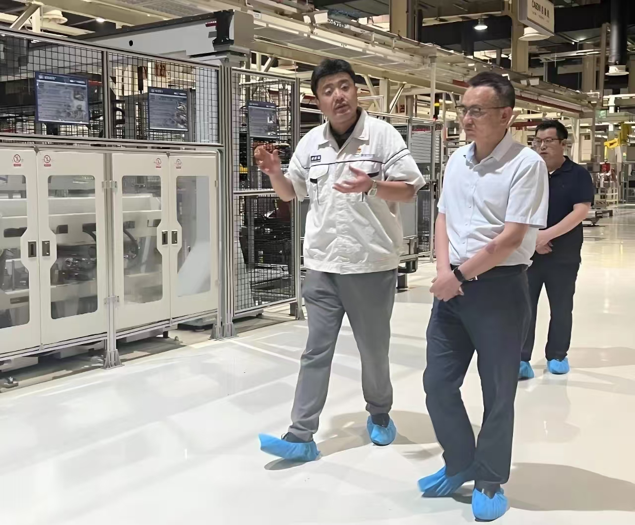 程立兵一行參觀了解放動(dòng)力惠山基地,現(xiàn)場(chǎng)學(xué)習(xí)了智能制造、精益管理和安全生產(chǎn)等方面做法。解放動(dòng)力惠山基地以“超級(jí)綠色”“超級(jí)智能”“超級(jí)精益”三大特性展示了其高標(biāo)準(zhǔn)和先進(jìn)性,致力于打造“世界領(lǐng)先的重型發(fā)動(dòng)機(jī)智能制造基地”,將精益化和綠色化貫穿生產(chǎn)全過(guò)程,實(shí)現(xiàn)工廠運(yùn)行管理智能化。智能制造車間里忙碌的機(jī)器人、自動(dòng)AGV物流小車、智能立體庫(kù)、綠色熱試線等引人注目,程立兵一行表示解放動(dòng)力在智能化改造、數(shù)字化轉(zhuǎn)型、探索綠色低碳可持續(xù)發(fā)展等方面對(duì)公司具有較強(qiáng)的借鑒和啟示意義。